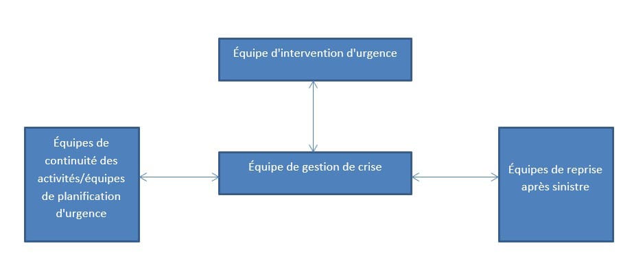 La planification en cas de catastrophe et les opérations qui l’accompagnent garantissent que l’organisation est prête à faire face à une menace ou à un incident immédiat. Les autorités locales apporteront leur aide dès qu’elles seront prêtes et dans la mesure du possible. Cependant, chaque organisation doit être capable de fournir une réponse interne à une situation d’urgence jusqu’à ce que les autorités soient prêtes à intervenir. Ces activités impliquent tous les groupes susmentionnés de l’organisation.